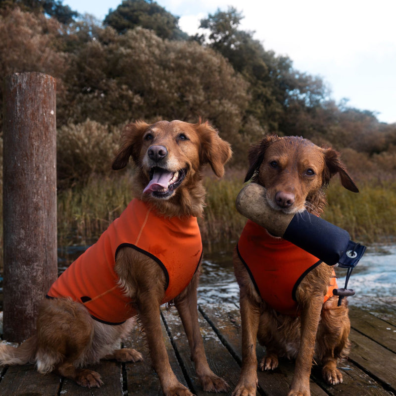 The vest is designed to fit closely to minimize the risk of branches and twigs getting caught while the dog is working in the field. However, the snug fit may sometimes cause wear under the front legs—especially if the dog runs vigorously over longer periods, which is more common in labradors than in spaniels.