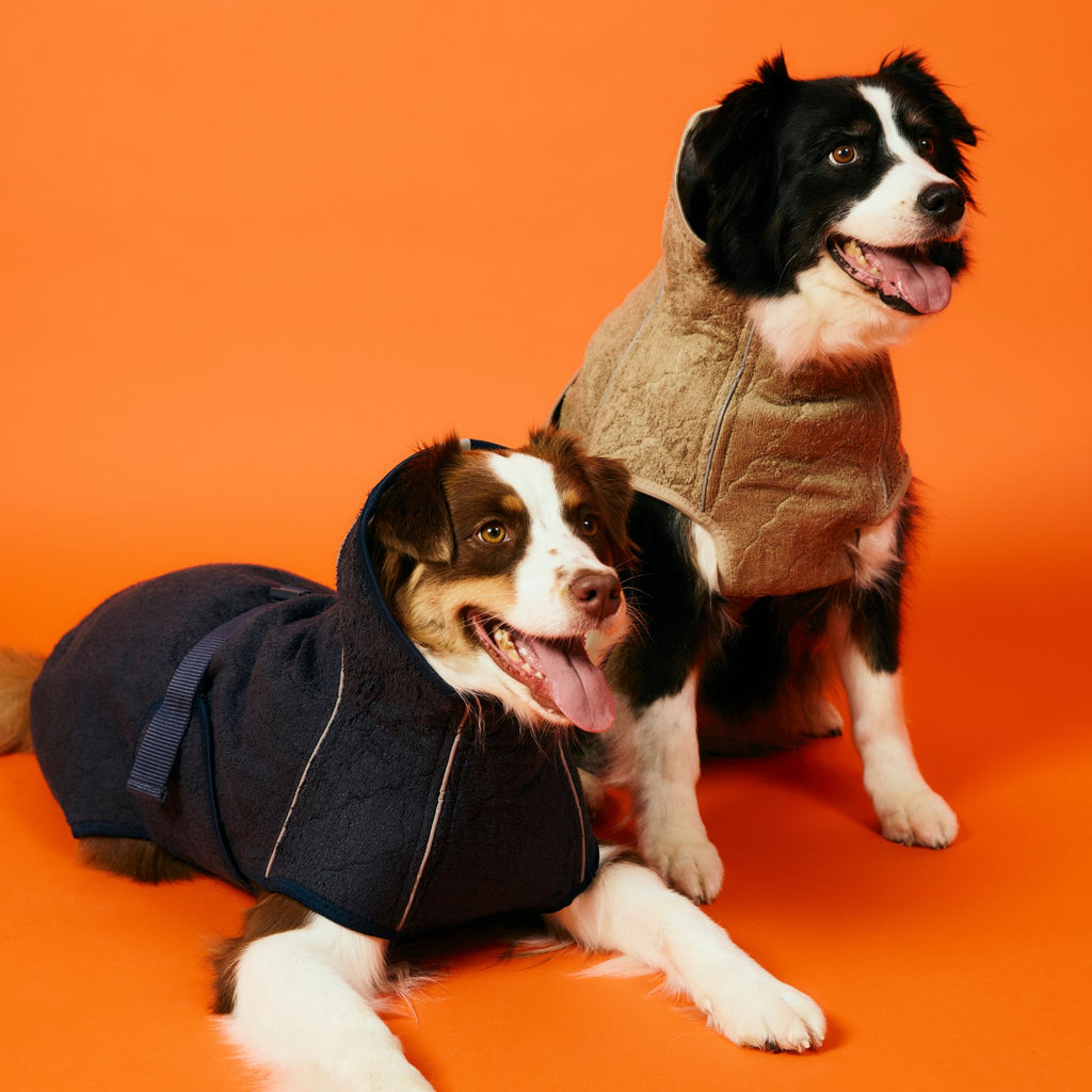 Our super absorbent drying coat is perfect after a bath, rain, swim or a muddy day in the field. The secret behind the effective absorbency is our Wet2Dry technology, which was developed after several years of research and testing with the goal of creating the most absorbent material that is at the same time odorless, durable and comfortable for the dog to wear.