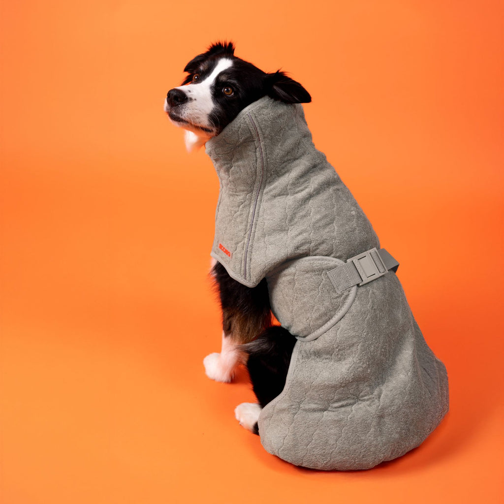 Supreme 3.0 is our newest drying coat designed with a focus on maximum functionality, comfort and absorbency. With an improved fit around the chest and neck, the coat now fits even more breeds and allows the neck to be folded down as needed.