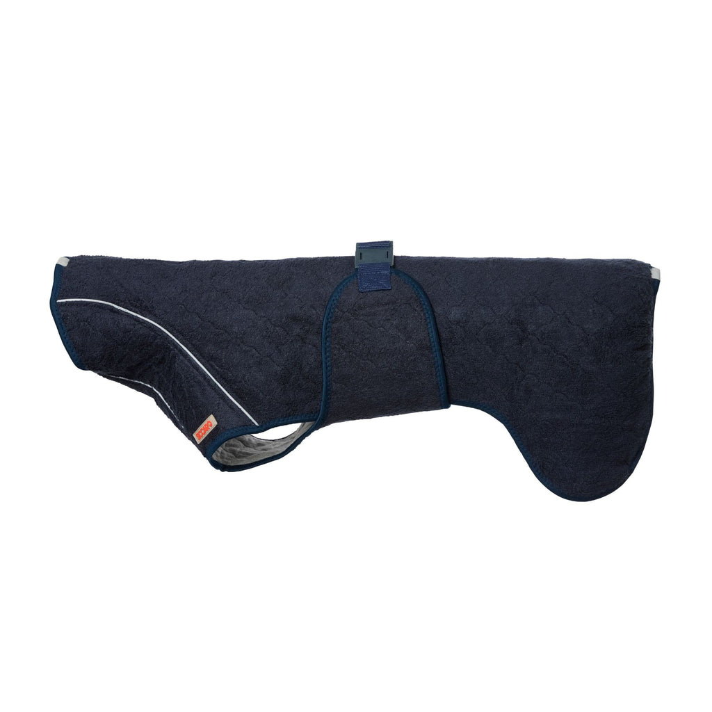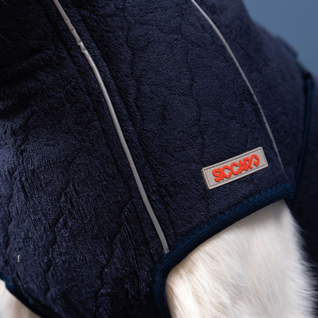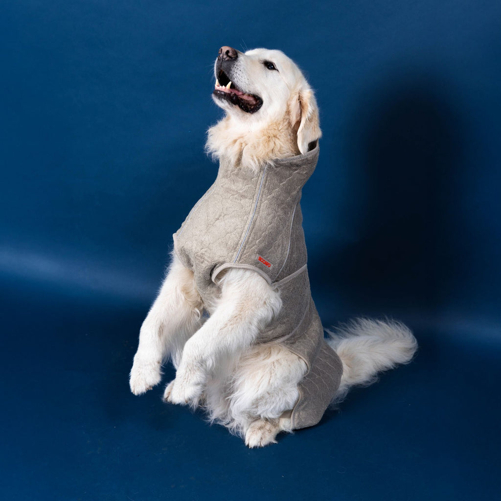 Our super absorbent drying coat is perfect after a bath, rain, swim or a muddy day in the field. The secret behind the effective absorbency is our Wet2Dry technology, which was developed after several years of research and testing with the goal of creating the most absorbent material that is at the same time odorless, durable and comfortable for the dog to wear.