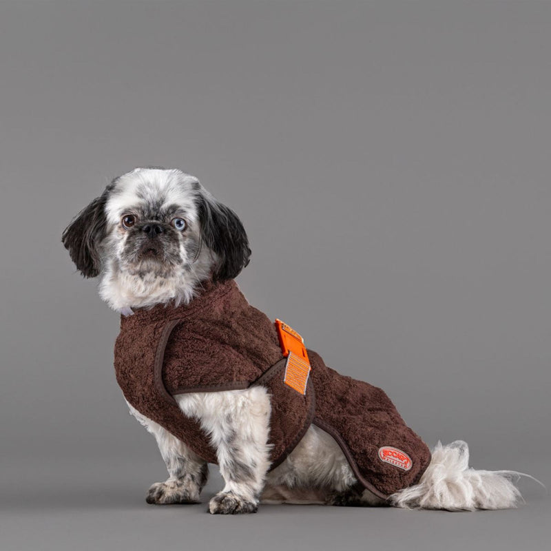 Our drying coats are super absorbent due to the special fabric blend we use. We call it Wet2Dry-technology. It consists of two layers that work together to absorb water from the dog's fur and wick it away. And as a bonus it also heavily reduces the smell of wet dog.